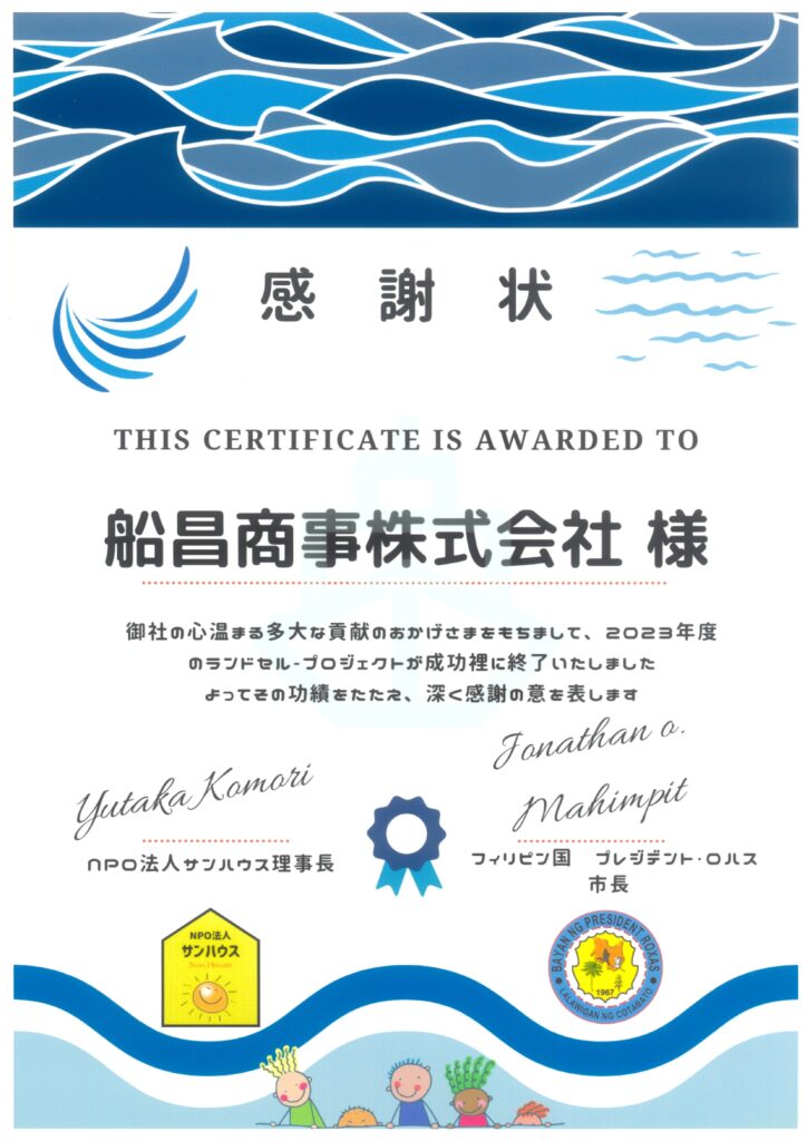 船昌商事は、NPO法人サンハウス様が毎年主催している「ランドセルプロジェクト」に協賛しています。