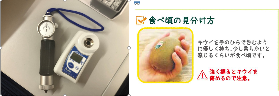 上段が硬さ、下段が糖度で食べごろのキウイを判断しています。
