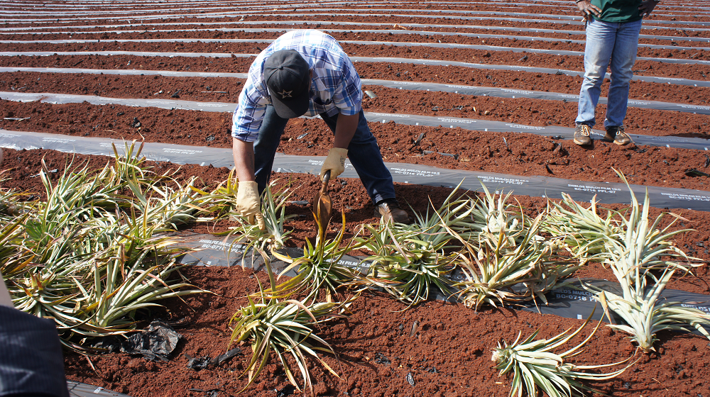 しばらく畑を休ませた後、パイナップルの苗を植え付けます。