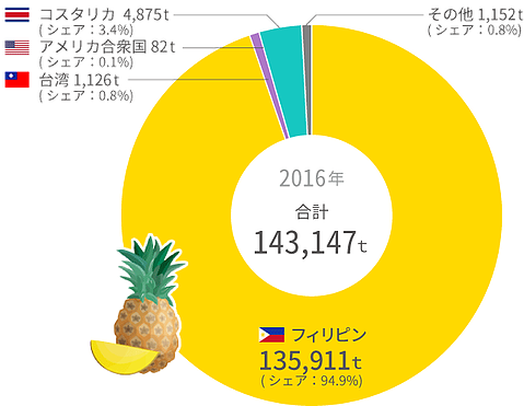 日本に輸入されるパイナップルは大部分がフィリピン産。