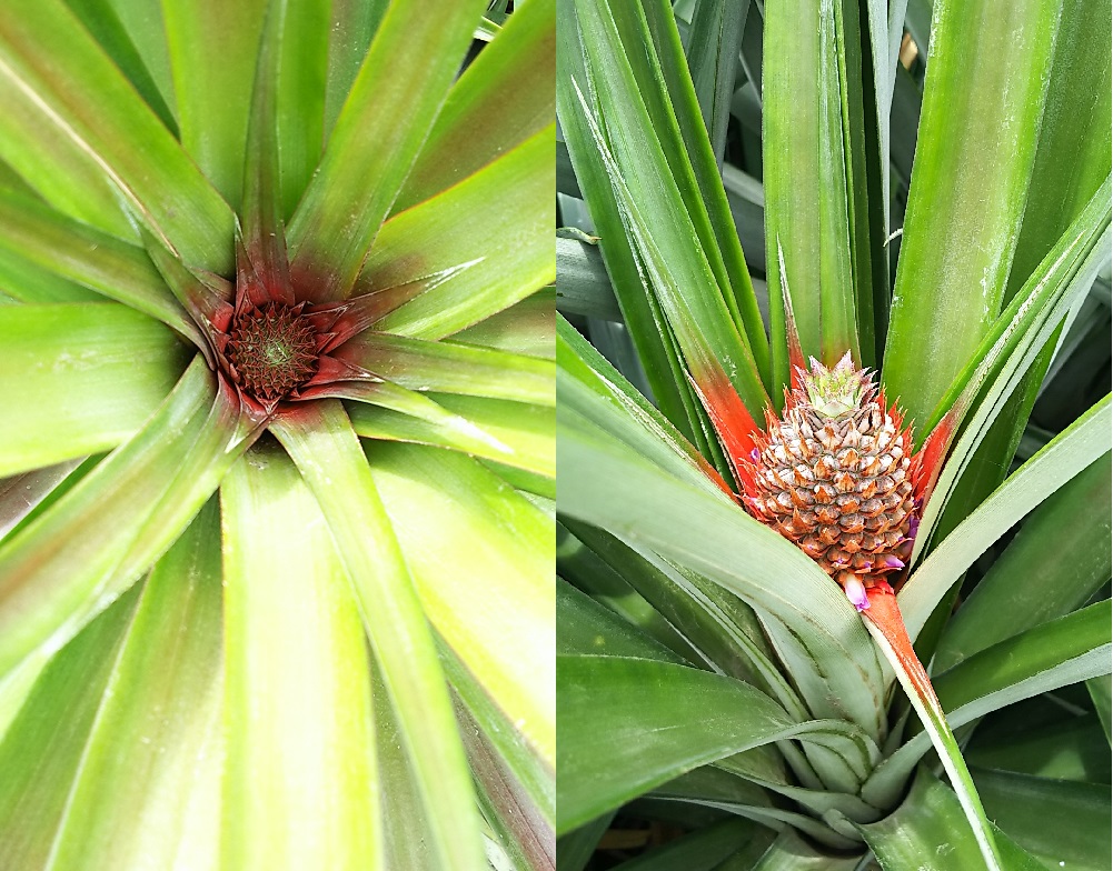 パイナップルの実は花全体が融合して果実となります。ここから半年程かけて実が大きく育っていきます。