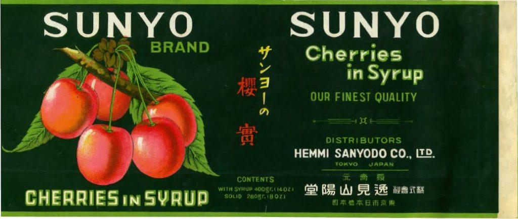 (株式会社サンヨー堂が保有する一番古い缶詰ラベル。日本語部分に注目)