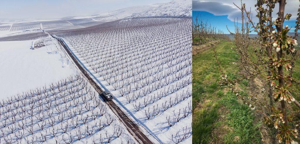 チェリーは夏は暑く、冬は寒い厳しい気候を好みます。写真は冬から春先にかけての様子です。