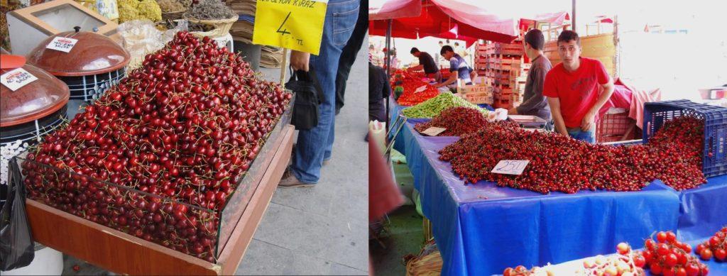 グラフからは、チェリーの大部分はヨーロッパ・中東で生産されていることが分かります。チェリーは有史以前から中東地域等に自生していたとされ、トルコ(生産量1位)やイラン(生産量3位)など現在でも主要な産地となっています。アメリカへは17世紀ごろにイギリス人が持ち込みました。現在ではカリフォルニア、オレゴン、ワシントン州など西海岸で生産され、生産量は世界2位となっています。日本人には高級品の印象があるチェリーですが、生産地では日常的に親しまれています。
