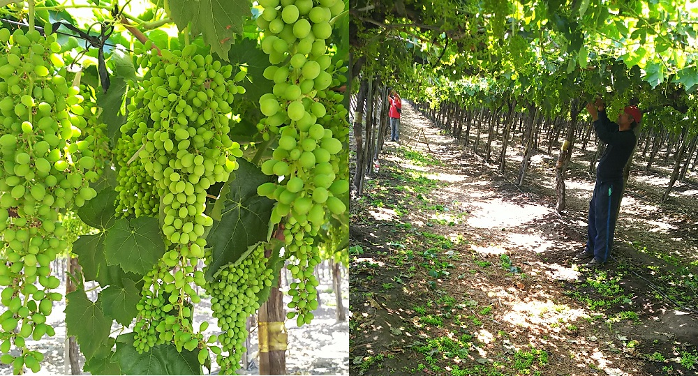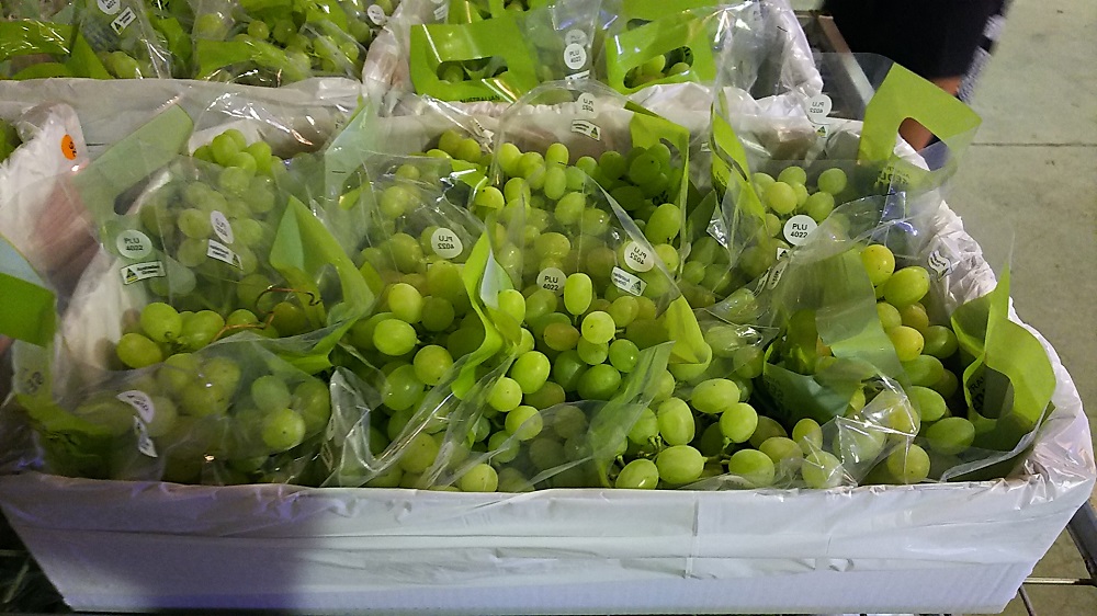 このように効率よく生産されている輸入ブドウですが、熟度を見極めてひと房づつ人の手で収穫していく点は国産も輸入もおなじです。見た目こそ整えられていませんが、味はとてもおいしいと自信を持って言えます。