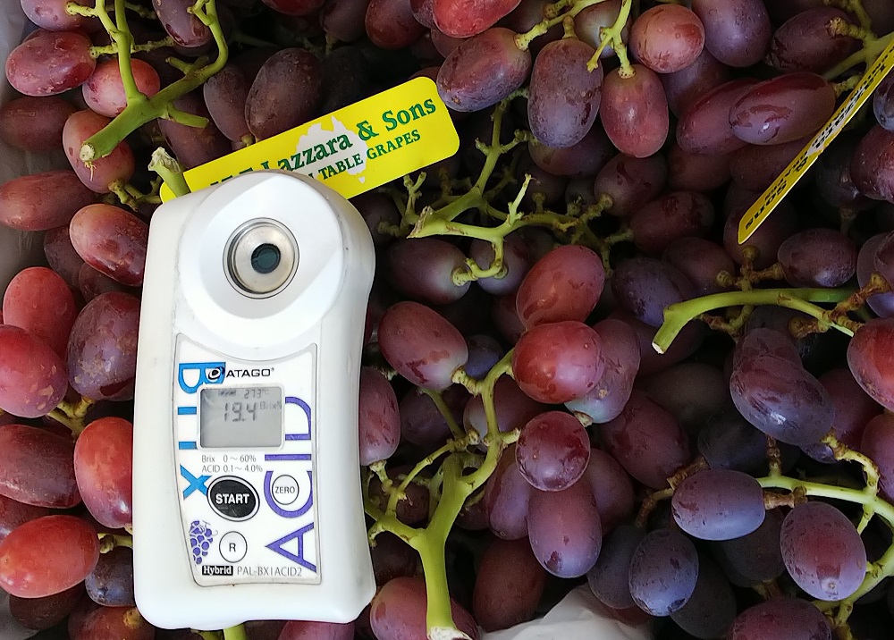 ブドウを専門に取り扱う弊社の営業が園地を周り、糖度を調査し、試食をして輸入元を決める輸入ブドウ。