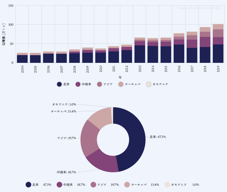 世界中で人気が高まっており、生産量は年々増加し続けています。原産地である北米が最大の産地です。