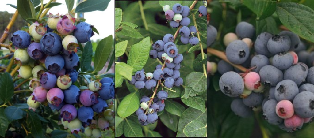 左:ノーザンハイブッシュ系 中央:サウザンハイブッシュ系 右:ラビットアイ系